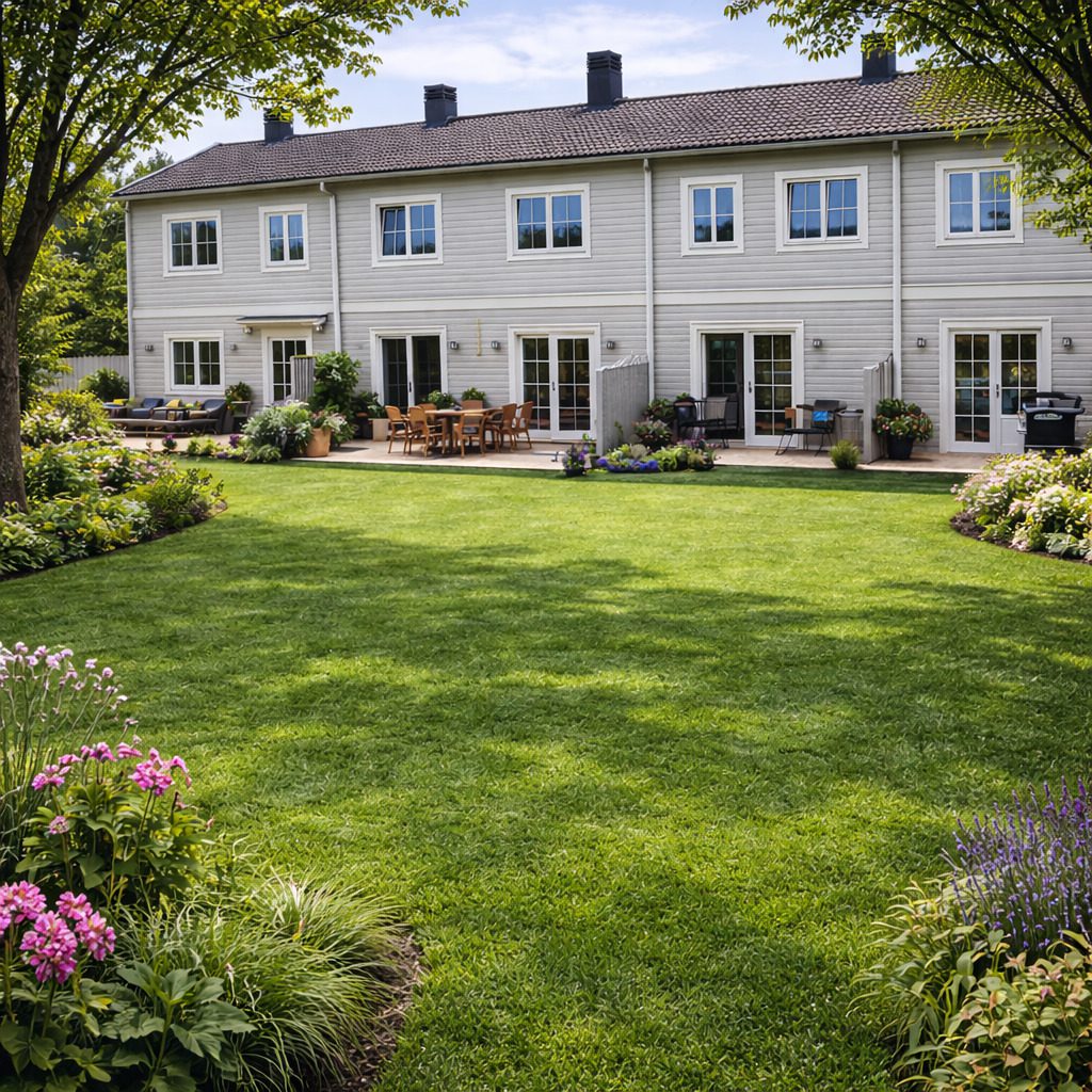 Tät och slitstark gräsmatta med naturlig färg och frisk lyster. Svenskodlat för svenska förhållanden lättskött, hållbar och vacker året runt.