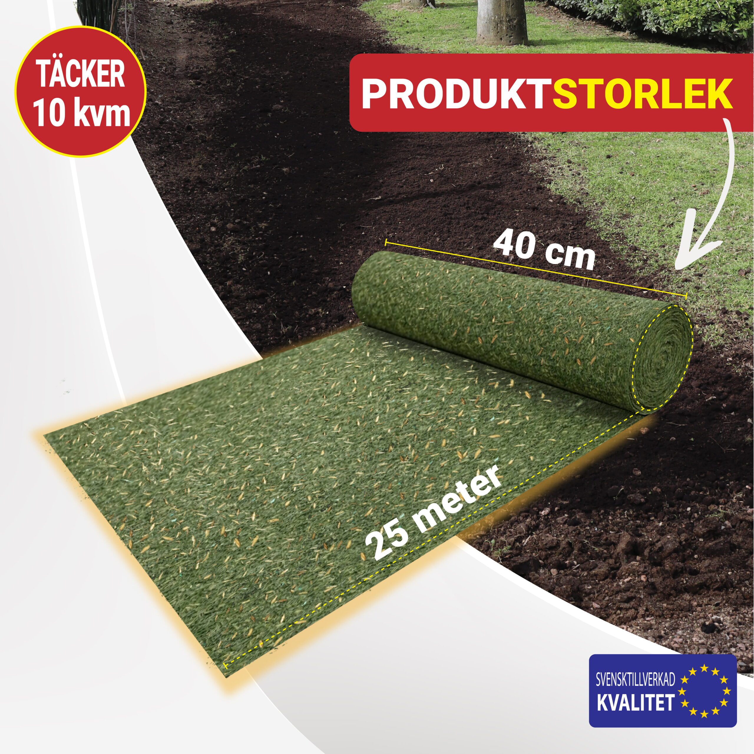 Förbered så ytan genom att luckra jorden. Du kan så när jorden har en temperatur på minst 8 grader. Rulla ut mattan. Vattna ofta men lite, se till så att jorden håller sig fuktig tills fröer har tagit sig och vuxit upp omkring 5 cm.